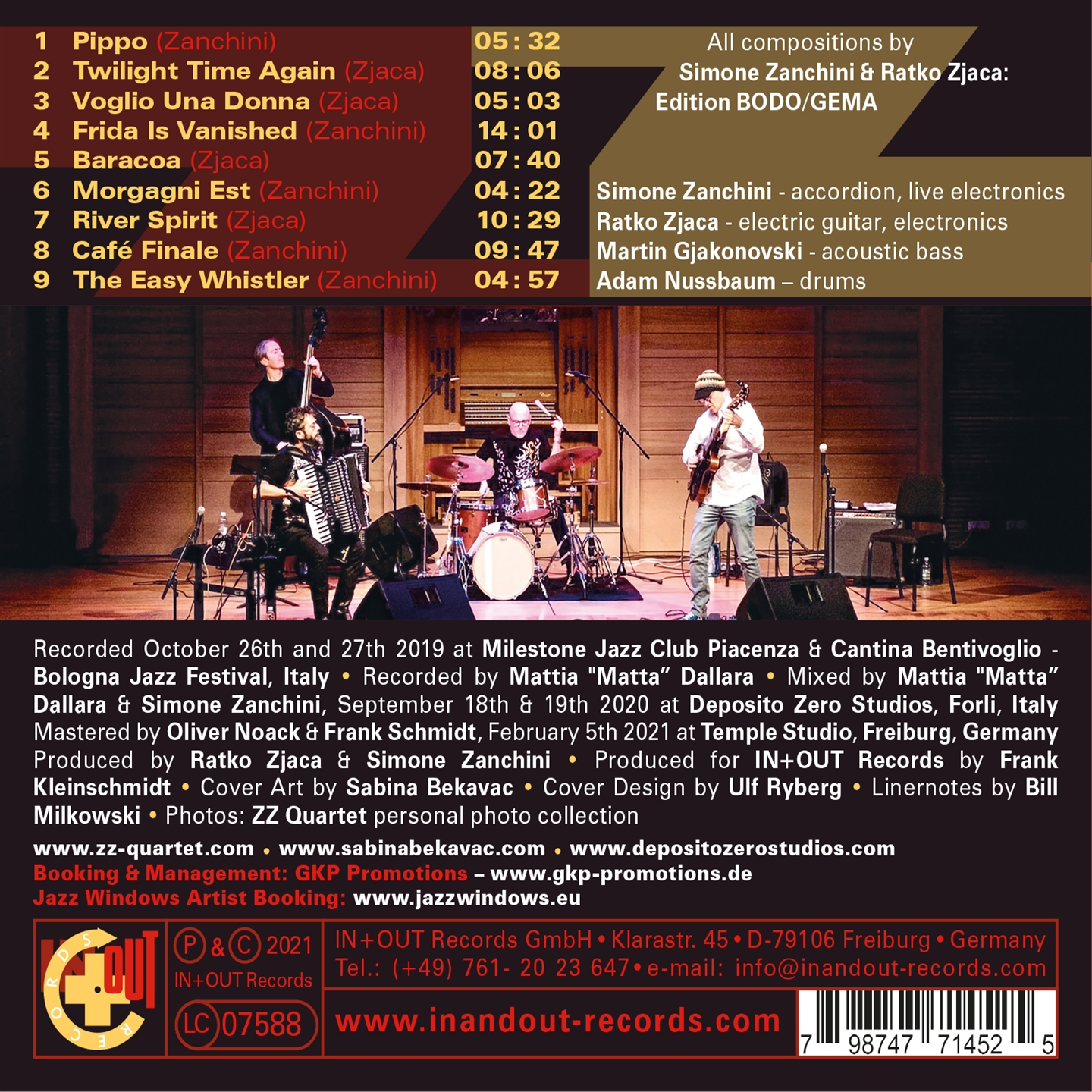 Questa terza uscita dello ZZ Quartet, guidato dal chitarrista Ratko Zjaca e dal fisarmonicista Simone Zanchini, vede gli intrepidi improvvisatori e virtuosi sui loro rispettivi strumenti esplorare nuovi territori musicali. Registrato prima della pandemia al Milestone Jazz Club di Piacenza e alla Cantina Bentivoglio durante il Bologna Jazz Festival 2019, “Midnight in Europe” vede Zjaca e Zanchini prendersi delle libertà con alcuni dei loro brani che avevano precedentemente registrato sui due precedenti lavori in studio — "The Way We Talk" del 2010 e "Beyond the Lines" del 2013. I due hanno anche suonato insieme nell'album del 2015 di Zanchini "Don't Try This Anywhere", il tributo del fisarmonicista al grande sax tenore Michael Brecker. Accompagnati dal bassista Martin Gjakonovski, originario della Macedonia e dal batterista americano Adam Nussbaum, Zjaca e Zanchini presentano un insieme eclettico di musica che fonde organicamente aspetti di jazz, classica, folklore, world music e rock, con un tocco di umorismo che aggiunge ulteriore brio alla fertile immaginazione di questi grandi improvvisatori.