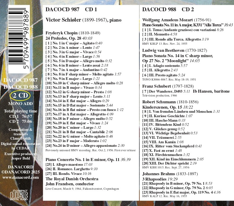 Barcode: 5709499987889 / Cat: DACOCD987-988 / 2 CD / Label: DANACORD