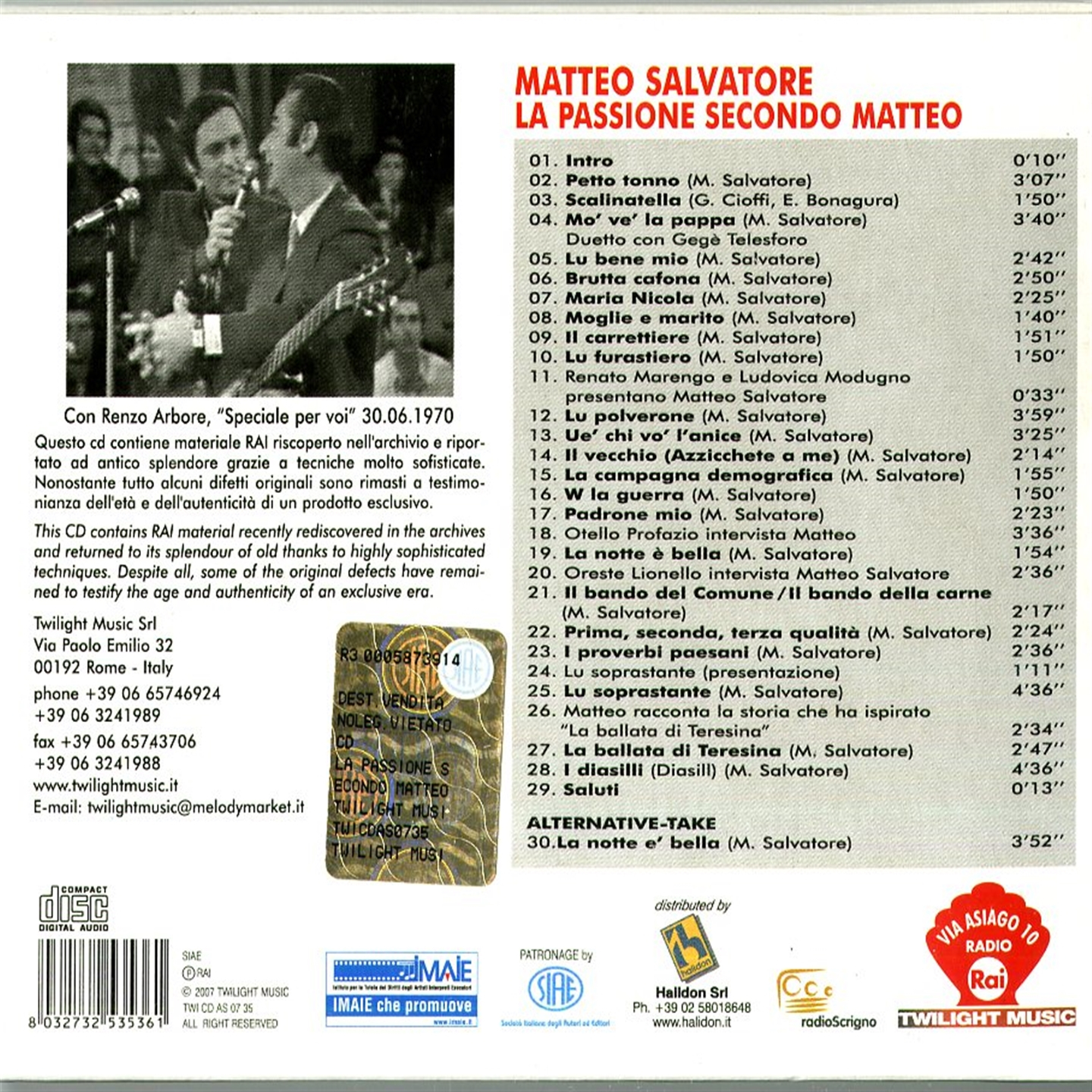 Barcode: 8032732535361 / Cat: TWICDAS0735 / 2 CD / Label: VIA ASIAGO 10