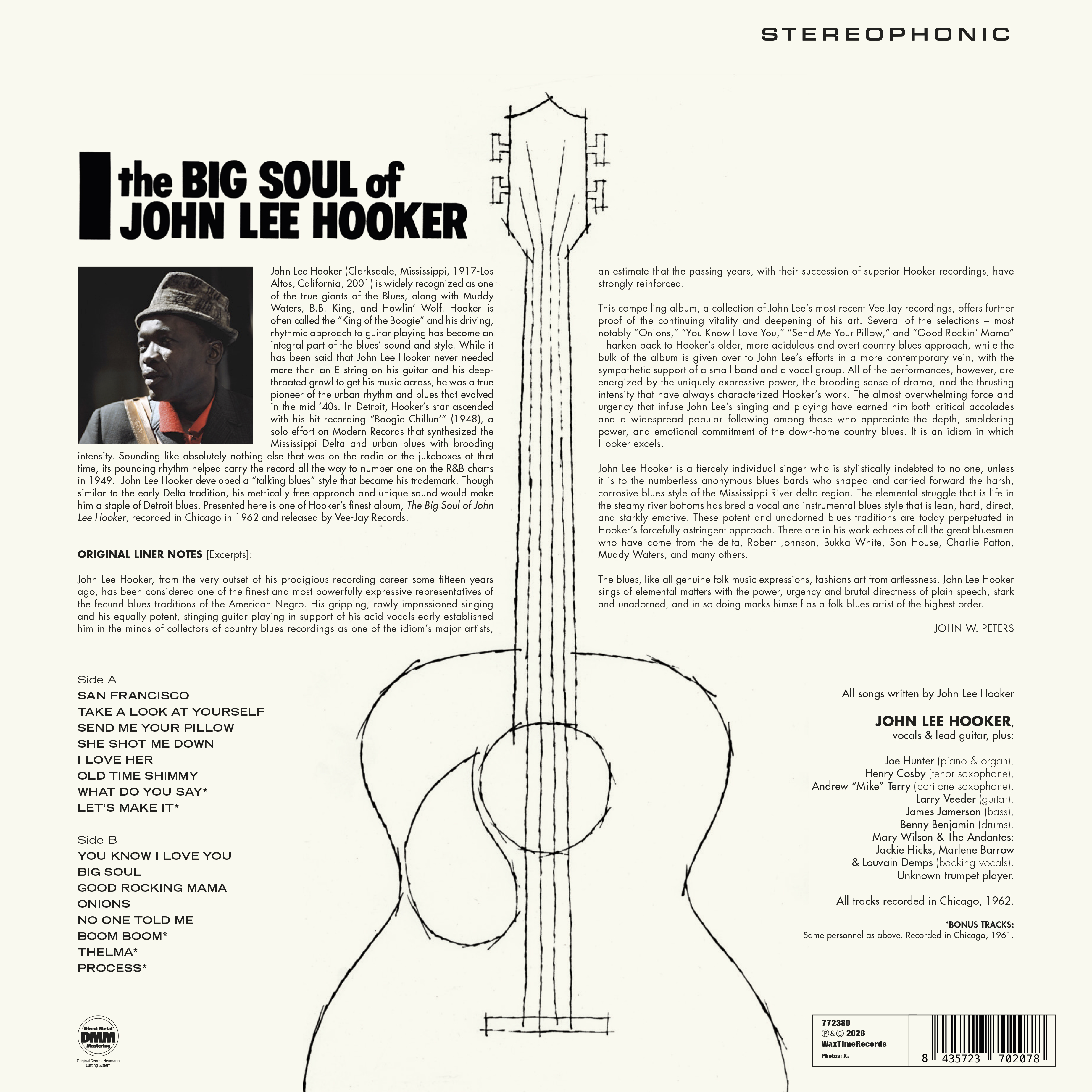Blues, insieme a Muddy Waters, B.B. King e Howlin' Wolf. Hooker è spesso chiamato il "Re del Boogie" e il suo approccio ritmico e trascinante alla chitarra è diventato parte integrante del suono e dello stile del blues. Qui viene presentato uno dei migliori album di Hooker, "The Big Soul of John Lee Hooker", registrato a Chicago nel 1962.