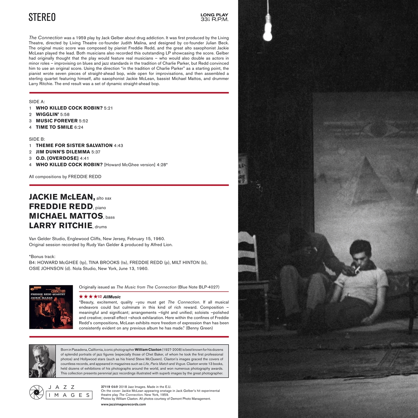Nato a Pasadena, California, il fotografo William Claxton (1927-2008) è noto per le sue dozzine di splendidi ritratti di jazzisti (in particolare quelle di Chet Baker, di cui ha scattato le prime foto professionali) e le star di Hollywood (come il suo amico Steve McQueen). Le immagini di Claxton sono comparse su riviste come Life, Paris Match e Vogue. Questa collezione presenta grandi registrazioni jazz arricchite dalle immagini superbe del grande fotografo.