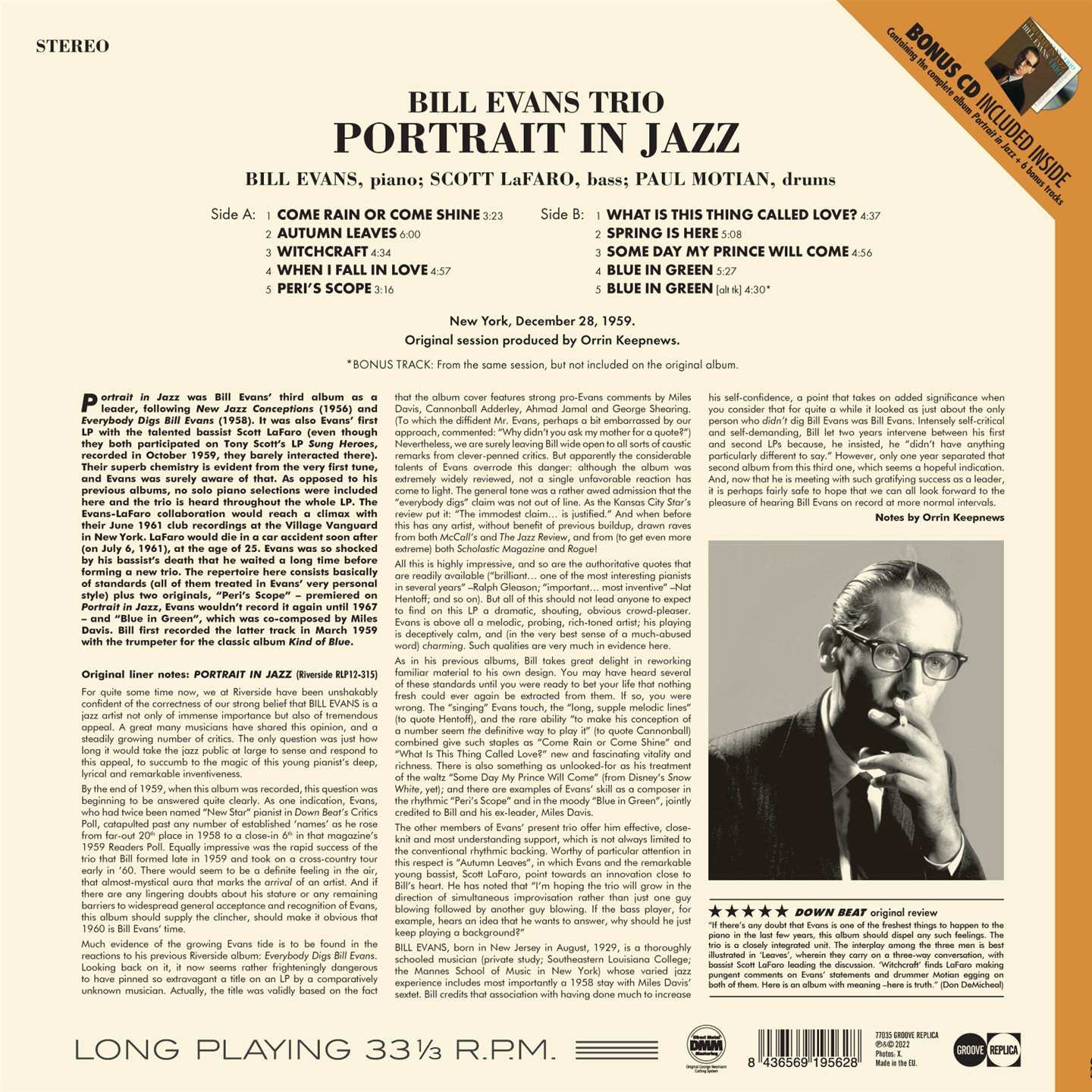 "Portrait In Jazz" è stato il terzo album di Bill Evan come leader, dopo "New Jazz Conceptions" (1956) e "Everybody Digs Bill Evans" (1958). È stato anche il primo LP di Evans con il talentuoso bassista Scott LaFaro. La straordinaria chimica dei due musicisti è evidente sin dal primo brano.